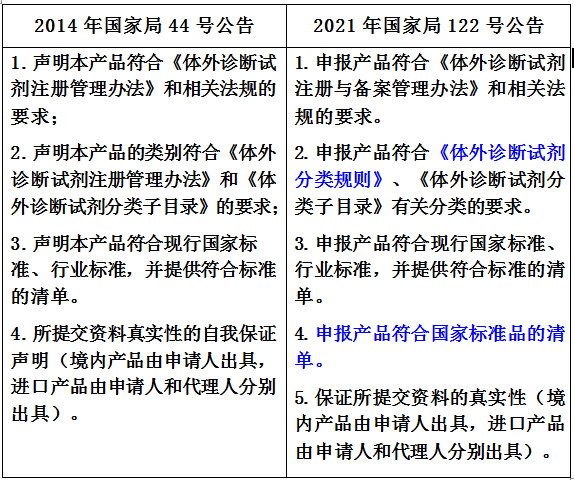 (1)有關分類的要求。由符合《體外診斷試劑注冊管理辦法》改為符合《體外診斷試劑分類規則》。新版的《體外診斷試劑注冊與備案管理辦法》中刪掉了關于IVD分類規則的內容,其內容全部調整到新發布的《體外診斷試劑分類規則》當中。