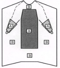 手術衣的前胸和袖部至少應有關鍵區域,如圖2所示的A區域和B區域。