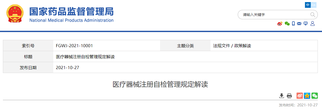 國家藥品監督管理局組織制定的《關于醫療器械注冊自檢管理規定》(國家藥品監督管理局公告第126號,自印發之日起施行,以下簡稱《規定》),已于2021年10月21日印發。現就《規定》的制定背景、主要內容和重點問題說明如下: