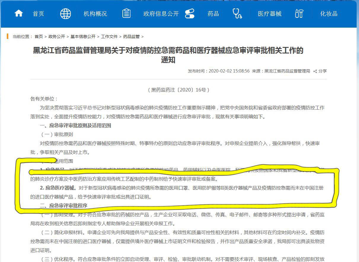 黑龍江省 | 用于疫情防控特殊審批的產品,批準證明文件在疫情結束后自動失效 |