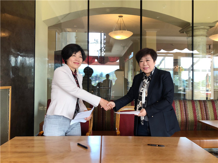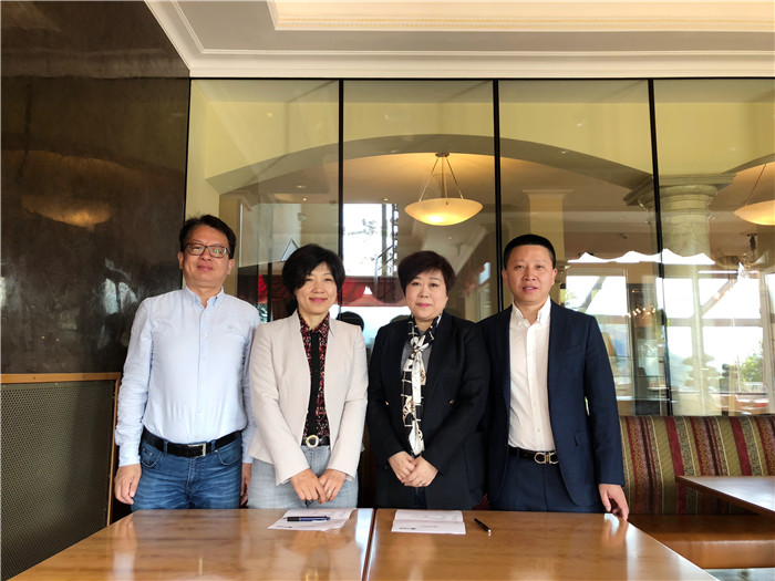 瑞旭集團總裁李妍女士與中檢集團歐洲公司副總經理楊萍女士簽約,參會的還有瑞旭集團副總裁林隆海先生及中檢集團東歐公司總經理章俊欣先生。