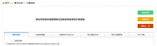 2. Then, after login, related enterprises can get to know the basic information of notification, notification process, examples of application materials, FAQs and documents relating notification, etc.