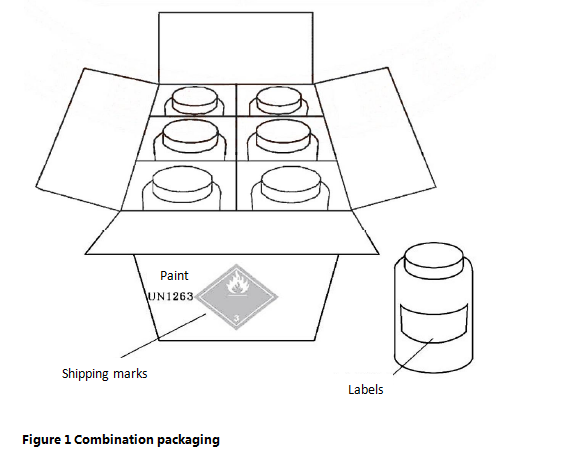 Combination packaging: Labels should be displayed on the inner package while shipping marks should be displayed on the outer packages. For instance: