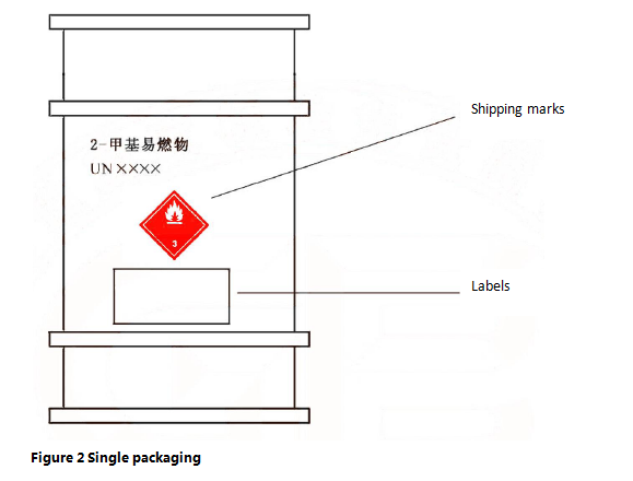 Shipping marks should be displayed on package during transport of dangerous goods. Besides, in practical shipment, labels should also be displayed at times depending on the packaging forms of the dangerous goods.