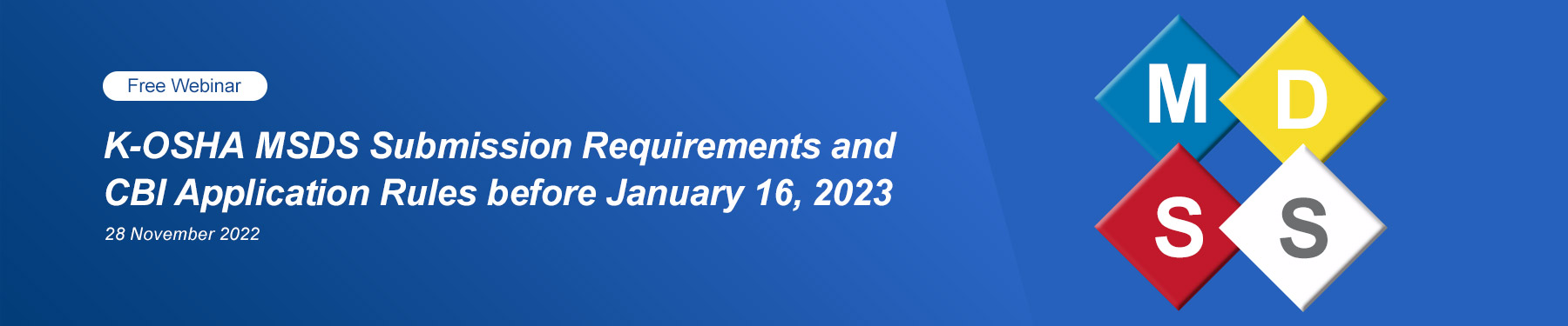 CIRS Group is to host a free webinar on K-OSHA MSDS submission requirements and CBI application rules before January 16, 2023 on November 28, 2022. If you are interested, please do not hesitate to join us!
