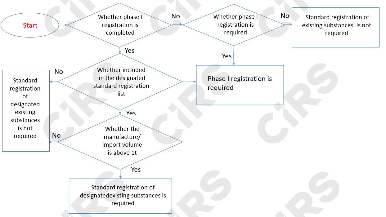 The registration types for existing chemical substances are mainly divided into Phase 1 registration and Standard registration. Details of the registration type are specified in the following chart: