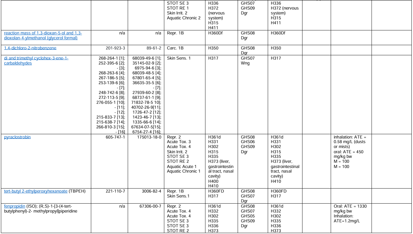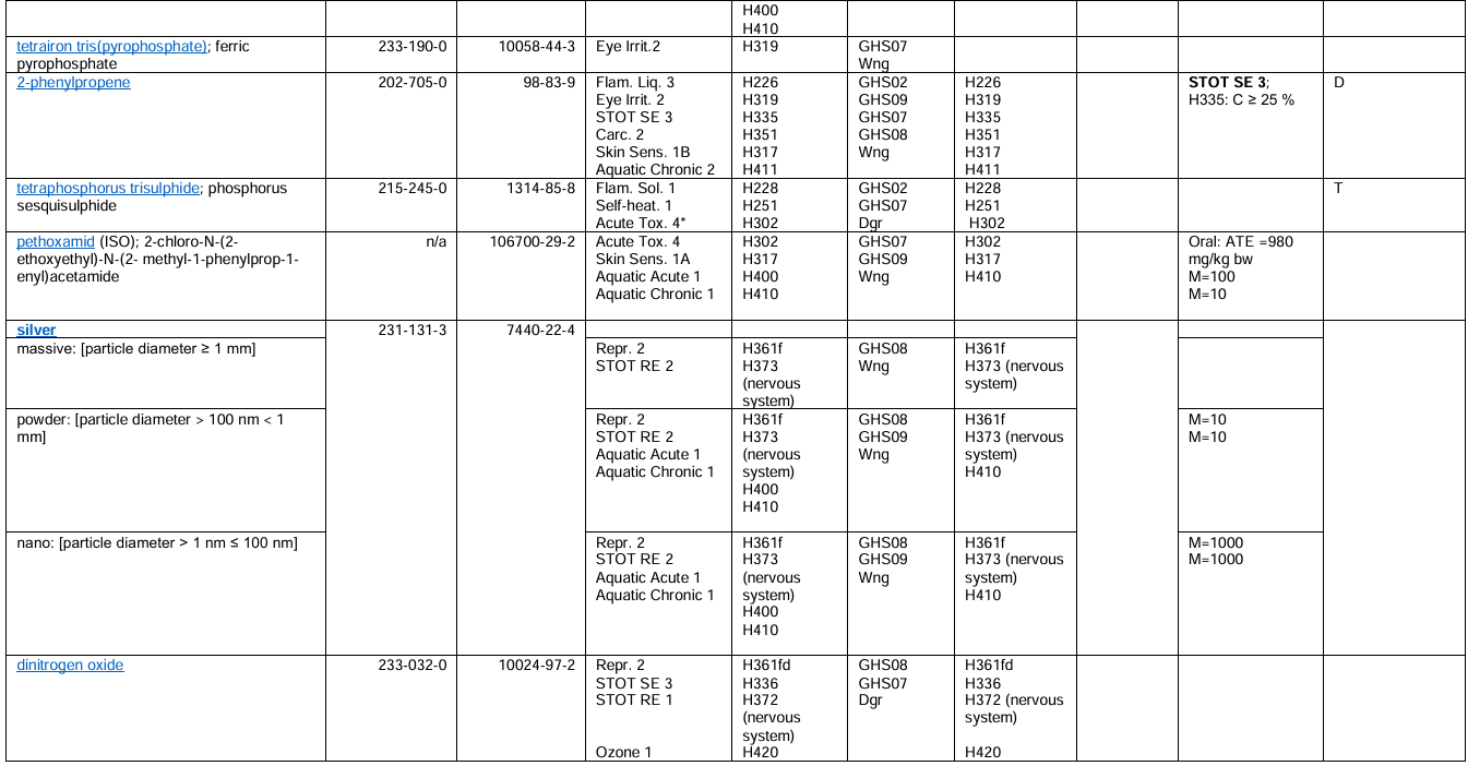 You can find the full list here: https://view.officeapps.live.com/op/view.aspx?src=https%3A%2F%2Fwww.hse.gov.uk%2Fchemical-classification%2Fassets%2Fdocs%2Fmcl-list.xlsx&wdOrigin=BROWSELINK