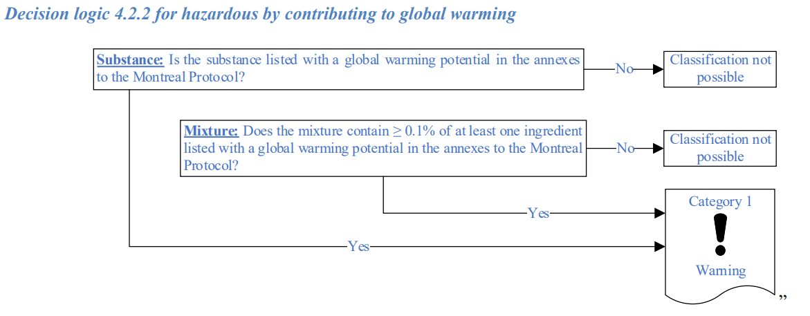 Decision logic for substances and mixtures hazardous by contributing to global warming: