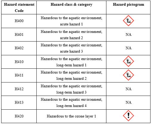 Understanding the relationship between GHS hazard pictograms and hazard statements is equally important as they are components of the label elements. The following table lists the correspondence between H codes and GHS pictograms: