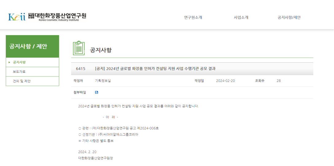On February 20, 2024, according to the announcement No. 2024-006 by the Korea Cosmetic Industry Institute (KCII), CIRS Group Korea, a subsidiary of CIRS Group, was designated as the executing agency for the KCII. CIRS Group Korea has been appointed as the designated service organization for the fifth consecutive year for the "Global Cosmetic Licensing Support Project," providing assistance to Korean cosmetic enterprises.