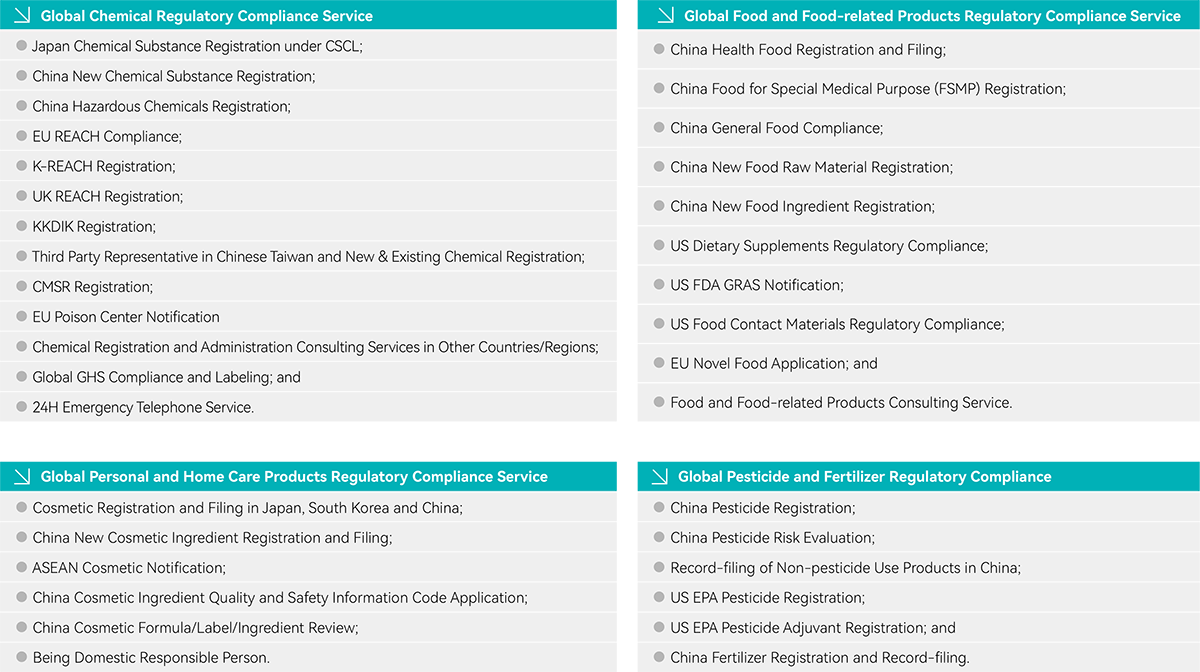 CIRS Japan can provide product regulatory and technical consulting across multiple industries, including chemicals, agrochemicals, disinfectants, cosmetics, food and packaging materials.