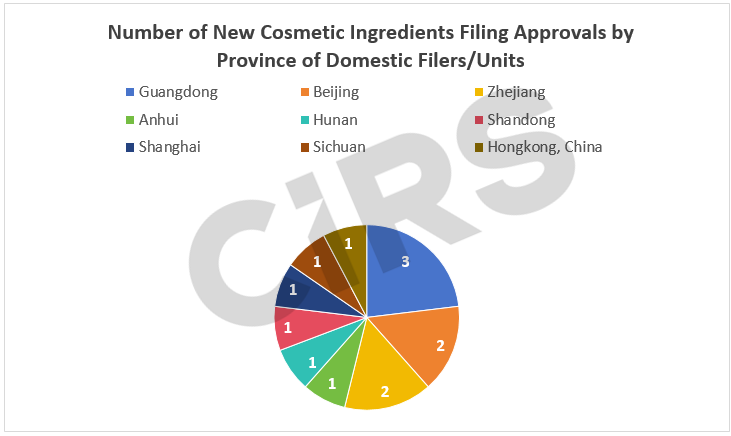 III. Distribution of Domestic Enterprises Filing for New Cosmetic Ingredients by Province