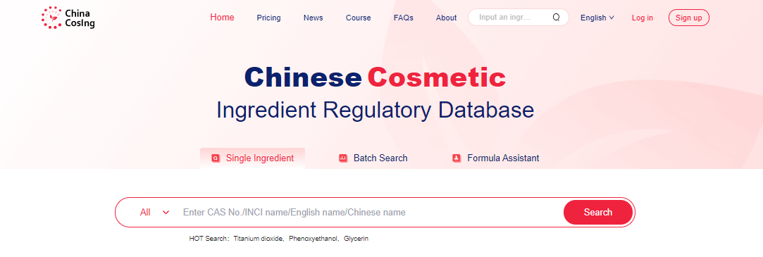 China CosIng (https://www.chinacosing.com/) is a free Chinese cosmetic ingredient regulatory database developed by CIRS Group that allows you to quickly search whether a cosmetic ingredient or substance is listed in the latest version of the Inventory of Existing Cosmetic Ingredients in China (IECIC 2021 edition) and whether it is restricted or prohibited in cosmetic products placed on the Chinese market. You can search the database by CAS No., INCI name, or Chinese name. CIRS Group regularly updates the database to keep it up to date.
