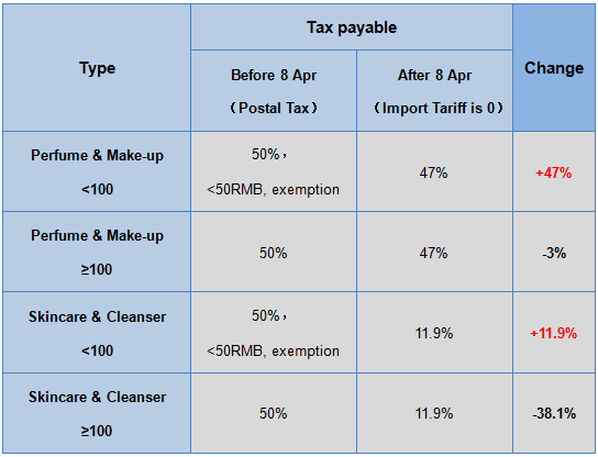 3. New tax policy for cross-border e-commerce and adjusted postal tax will take into effect from 8 April 2016.