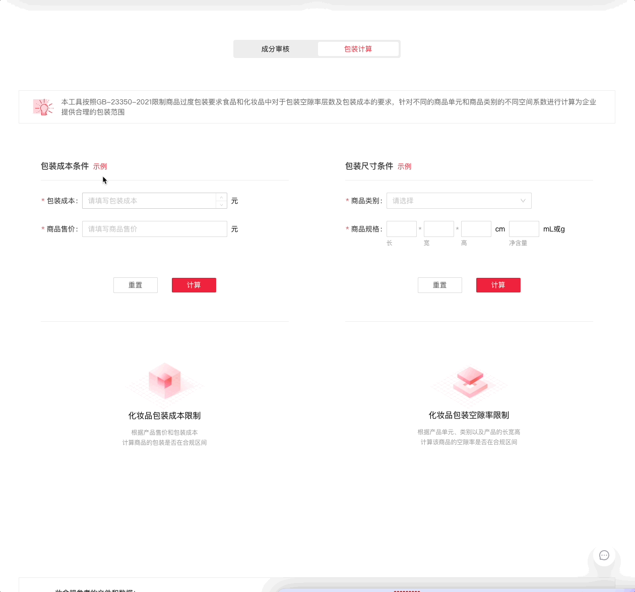 Cosmetic packaging component/ cost audit and void rate calculation