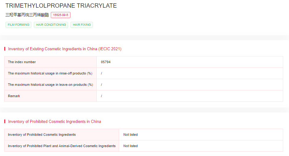 Substances including Benzophenone, Theophylline, Melia Azadirachta Seed Extract, Trimethylolpropane Triacrylate, Pentetic Acid, Pentasodium Pentetate are also listed in the Inventory of Existing Cosmetic Ingredients in China (IECIC 2021), if you would like to know more info about these substances or whether your substances are listed in the IECIC, please search our free cosmetic inventory search system – China CosIng 20.