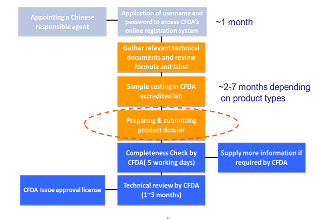 The diagram below is an overview of the CFDA registration process of cosmetics, step by step explained in the subsequent paragraphs.