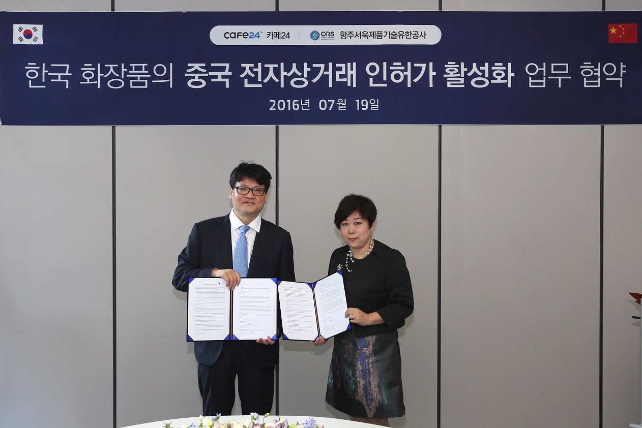 “China is becoming one of the largest markets of Korean cosmetic. The amount of Chinese online transaction in 2015 was 5400 billion KRW, a 35% rise compared to 2014, which will be expected to reach 47000 billion KRW in 2018 with a 30% annual growth.” Li Zaishuo, Cafe24 president, said at the signing ceremony.