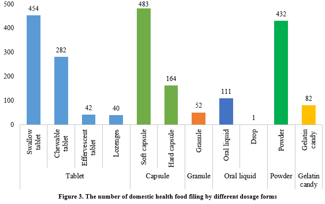 Health food filing status according to different dosage forms