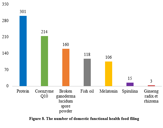 Health food filing status according to different functional components