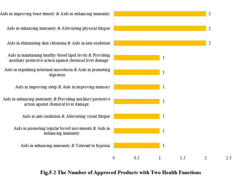 Except for those new products with a single health function, there are also 13 products approved with two health functions (shown in Fig.5-2).
