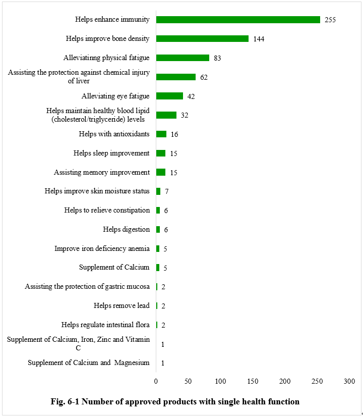 Number of Approved Products with Different Health Functions