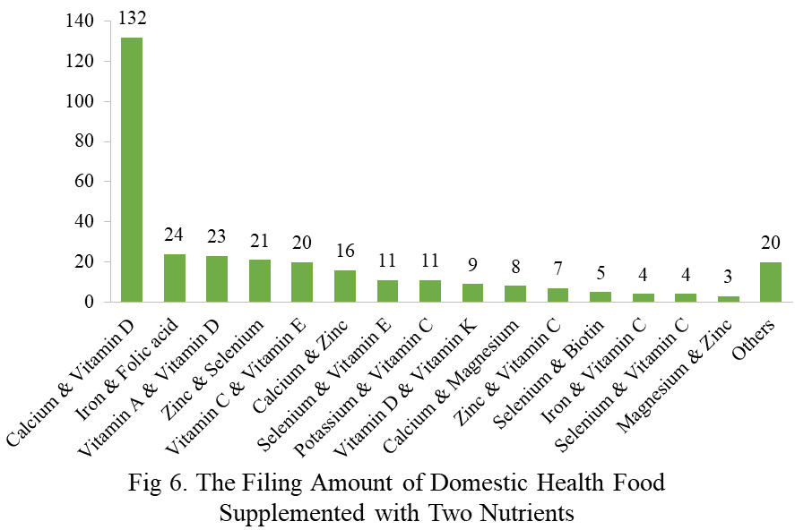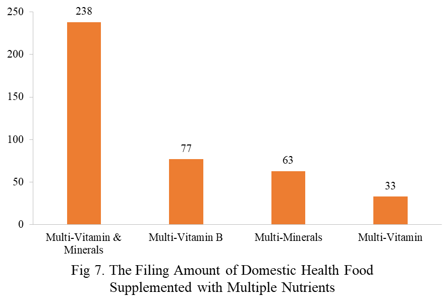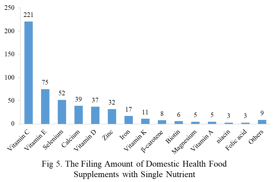 Among the domestic filed products, the most popular nutrition supplements are Vitamin C supplements, Calcium and vitamin D supplements, and Multi-vitamins & minerals supplements, which are 221, 132, and 238 respectively.