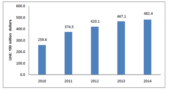 Figure 1 The trade value of imported food in China from 2010 to 2014