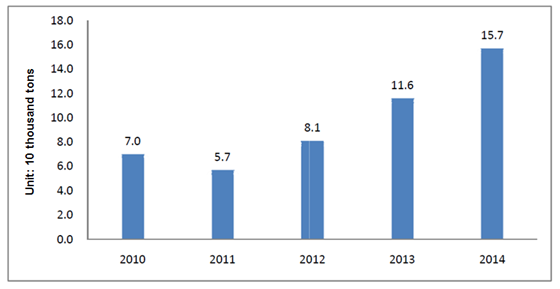Figure 6 Imported amount of infant formula milk powder from 2010 to 2014