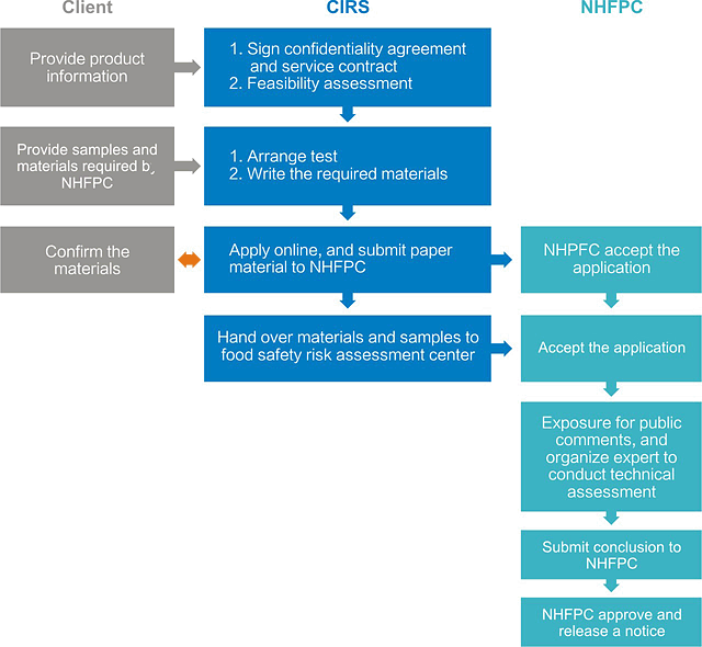 5 | New food additive application | If a food additive is excluded in GB 2760, GB 14880, GB 29987 or NHFPC notices, it cannot be used unless getting through the new food additive application. CIRS could help to collate required documents, arrange test for you, and help you apply for new food additive under NHFPC. |