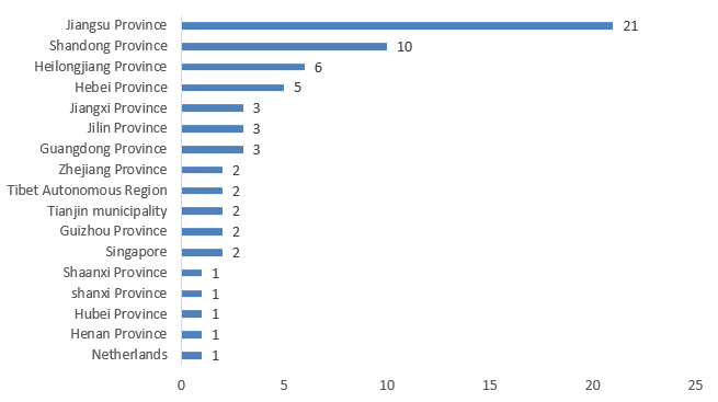 The 66 FSMPs approved for registration in 2024 came from 17 different provinces and regions. Jiangsu, Shandong, and Heilongjiang provinces ranked top three with 21, 10, and 6 products respectively, accounting for 32%, 15%, and 9% of the total approved number. For specific provinces and regions along with their data, see Figure 5 below.