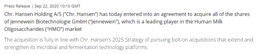Within the same year, Chr. Hansen A/S acquired Jennewein Biotechnologie GmbH, marching into the HMOs market, strategically positioning itself and successfully obtaining market approvals multiple HMOs in the EU and the United States.
