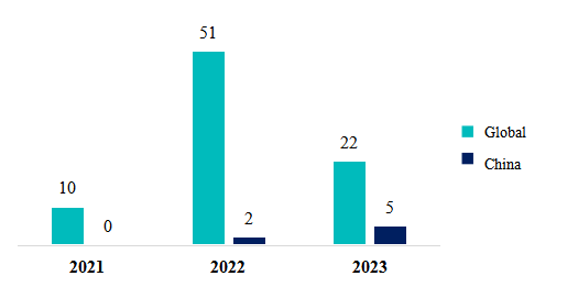 Figure 3. Substances in pending status both domestically and globally from 2021-2023