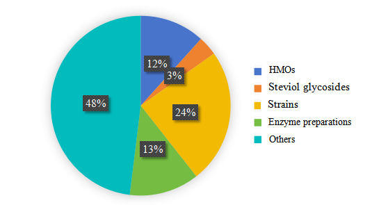 HMOs and steviol glycosides have seen a substantial number of notifications, aligning with the rapid advancement in synthetic biotechnology in recent years. Additionally, there is a wide variety of enzyme preparations, including amylases, proteases, invertase, and complex enzymes.