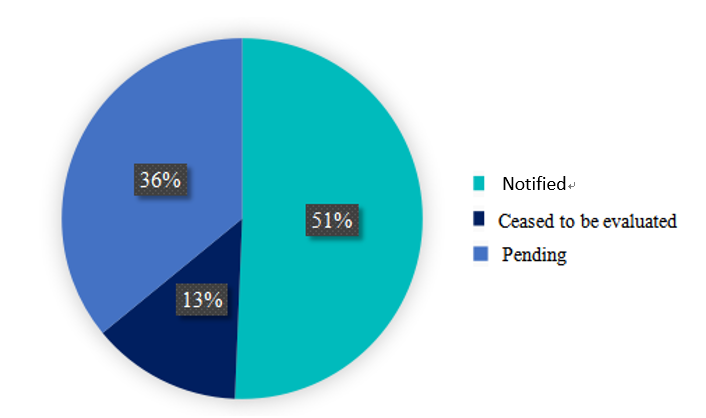 As illustrated in Figure 3, 2022 witnessed the most significant number of pending substances, totaling a substantial 51 substances. It's worth noticing that the FDA has extended the time for archiving new submissions (granting GRN No.) due to the surge in submissions. Consequently, many products submitted in 2023 are either yet to be archived or updated on the official website.