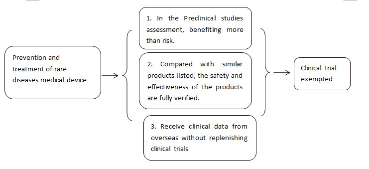 (I)For medical devices used for the treatment of rare diseases, the pre-clinical research or other evidence can determine that the patient's benefit from using the device is significantly greater than the risk, and the company is in accordance with the technical review on the premise of communication with the technical review department. Under the advice from technical review department, clinical trials can be exempted.