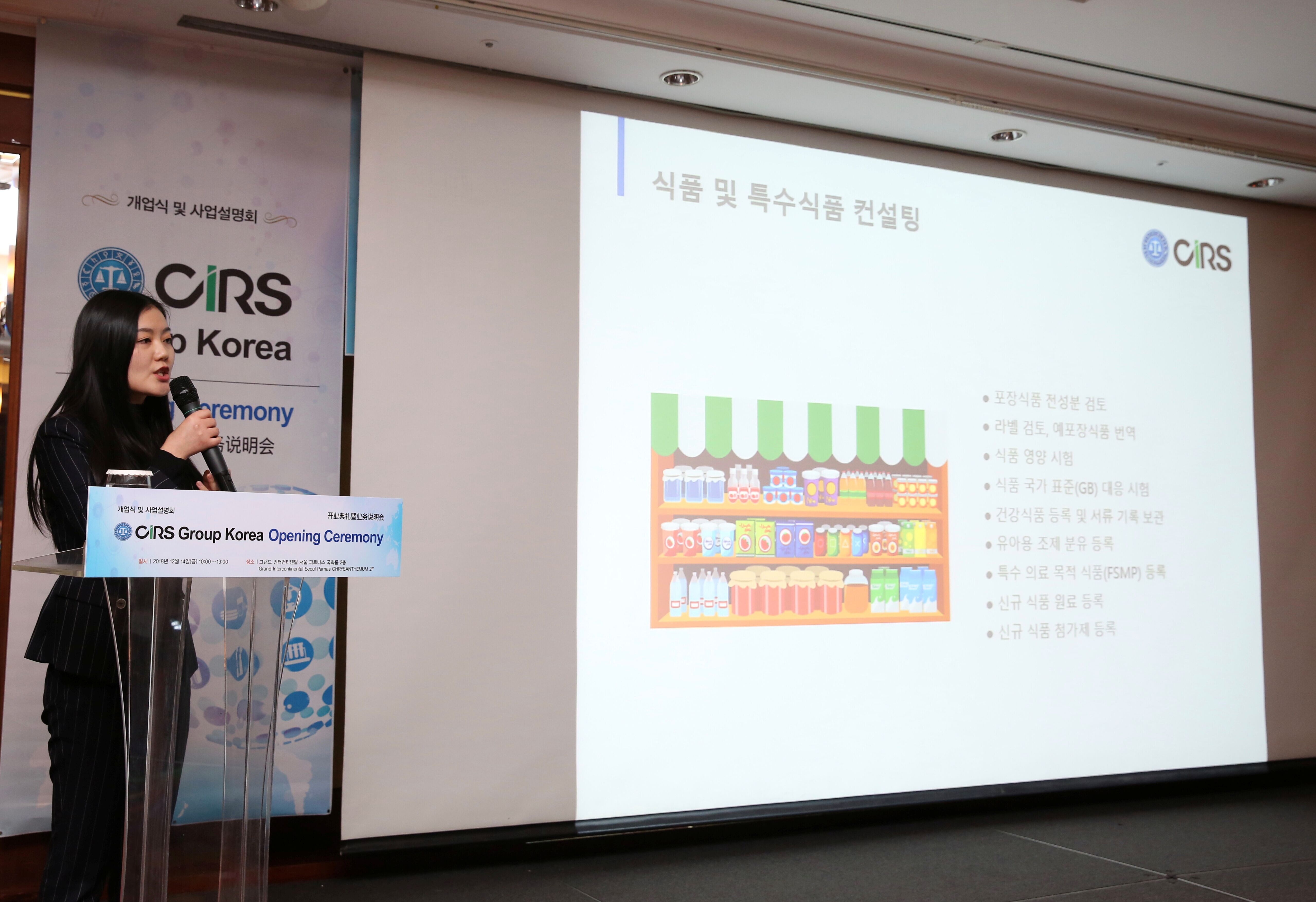 14 Dec. 2018, CIRS Group Korea Ltd. successfully held its opening ceremony in Grand InterContinental Seoul Parnas. Mr. Zhiyong Wang from China Association for Consumer Products Quality and Safety Promotion, Ms. Hongwei Zhang from Chinese Center for Disease Control and Prevention, Mr. Kaiguo Yu from China Certification and Inspection Group Korea Co., Ltd. as well as enterprise representatives from JEMAI, KTR, MOTIE, KITA, KOTRA, aT, Air Liquide, Bayer, BASF, Lanxess, DOW, P&G, Solva, etc. attended the ceremony.